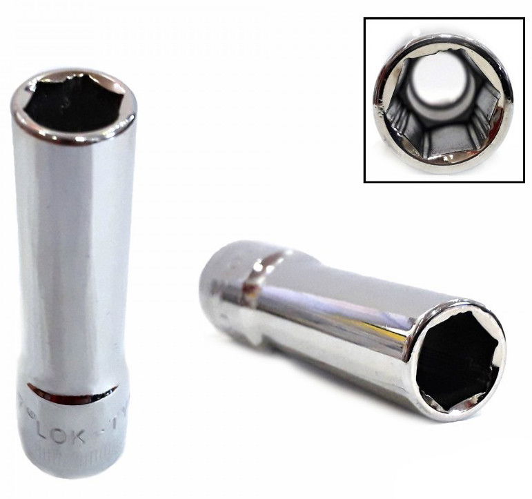 Lok-Typ dugókulcs fej, 3/8"-os, 6 lap fejű kiszerelésben, erős Chrome-Vanádium acélból készült, skót ipari minőségű.
